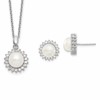 Sterling Silver Rhodium-plated 8-9mm White Button Freshwater Cultured Pearl and CZ 17 inch Necklace and Post Earrings Set