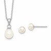 Sterling Silver Rhodium-plated 6-7mm White Teardrop Freshwater Cultured Pearl 17 inch Necklace and Button Post Earrings Set