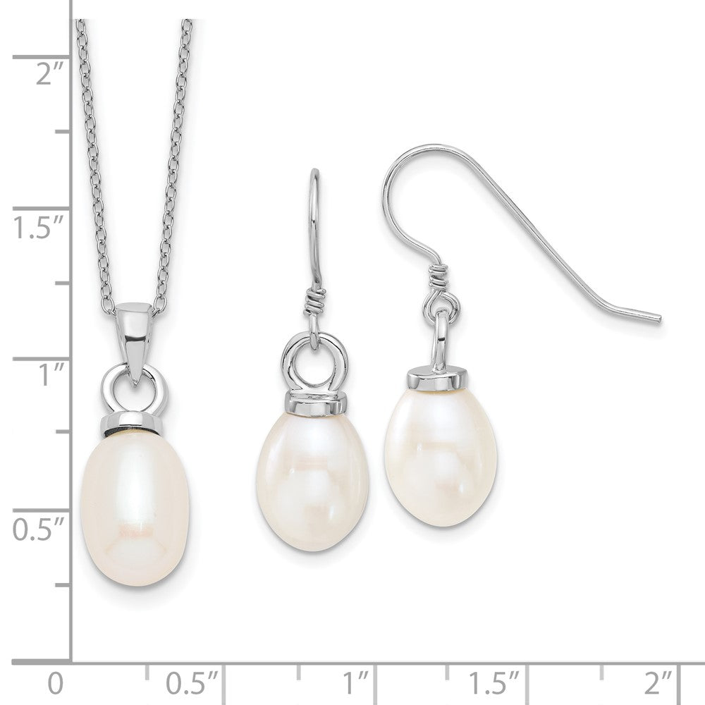 Sterling Silver Rhodium-plated 10-11mm White Teardrop Freshwater Cultured Pearl 17 inch Necklace and Dangle Earrings Set