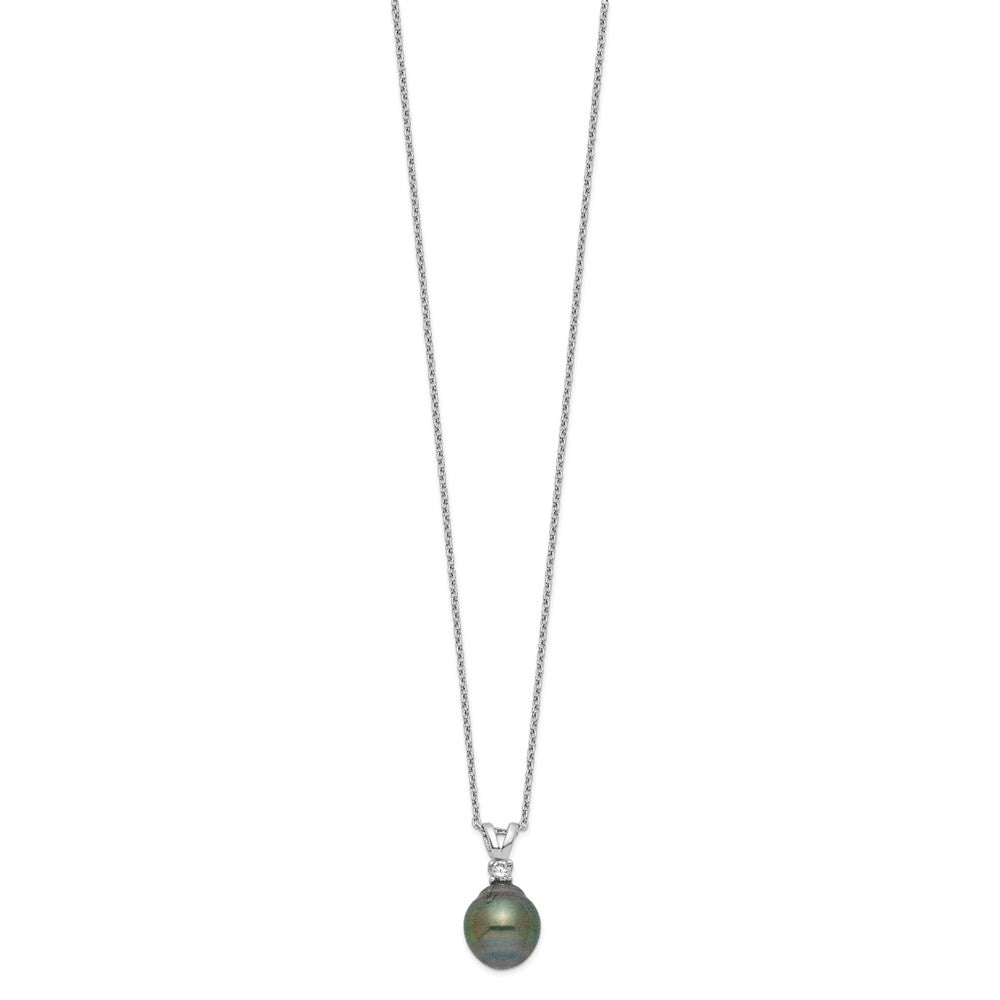 Sterling Silver Rhodium-plated 9-10mm Black Teardrop Tahitian Saltwater Cultured Pearl and CZ 17 inch Necklace and Post Dangle Earrings Set