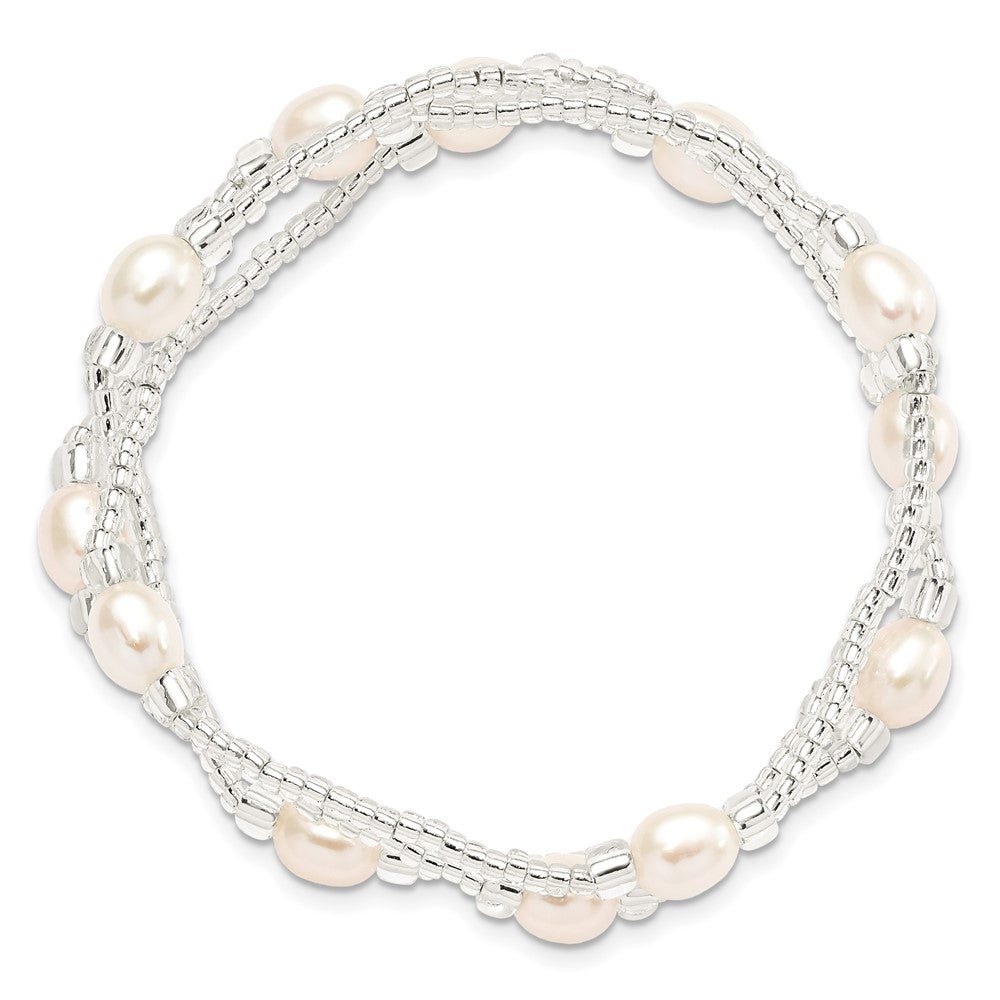 6-8mm White Rice Freshwater Cultured Pearl and Glass Bead Stretch 3-Bracelet Set