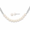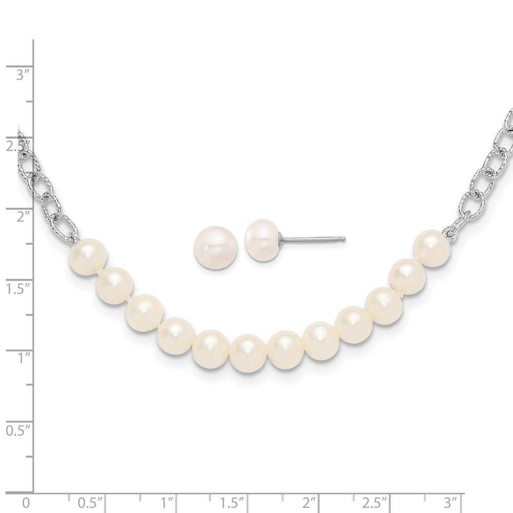 Sterling Silver Rhodium-plated 6-8mm White Near-Round Freshwater Cultured Pearl 18 inch Necklace and Post Earrings Set