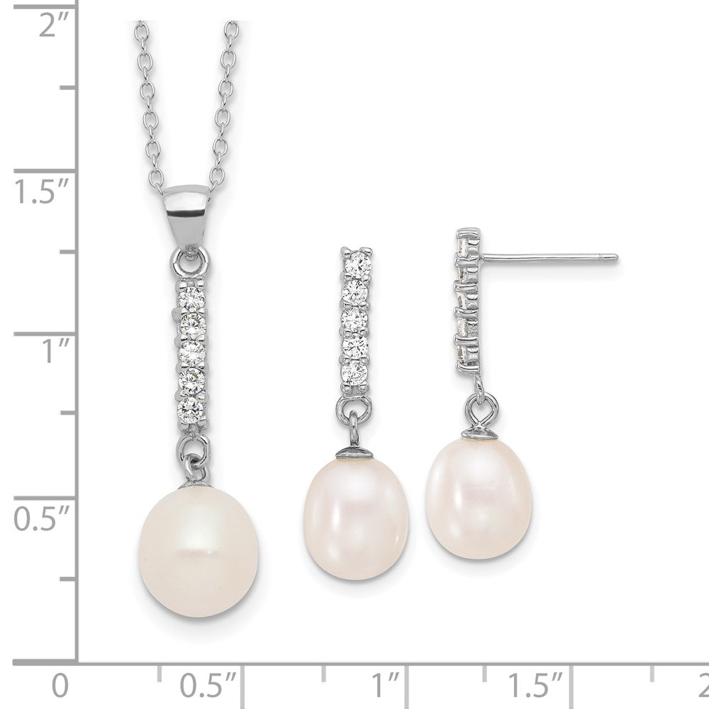 Sterling Silver Rhodium-plated Teardrop Freshwater Cultured Pearl and CZ 17 inch Necklace and Post Earrings Set