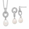 Sterling Silver Rhodium-plated 7-9mm White Teardrop Freshwater Cultured Pearl and CZ 17 inch Necklace and Post Dangle Earrings Set