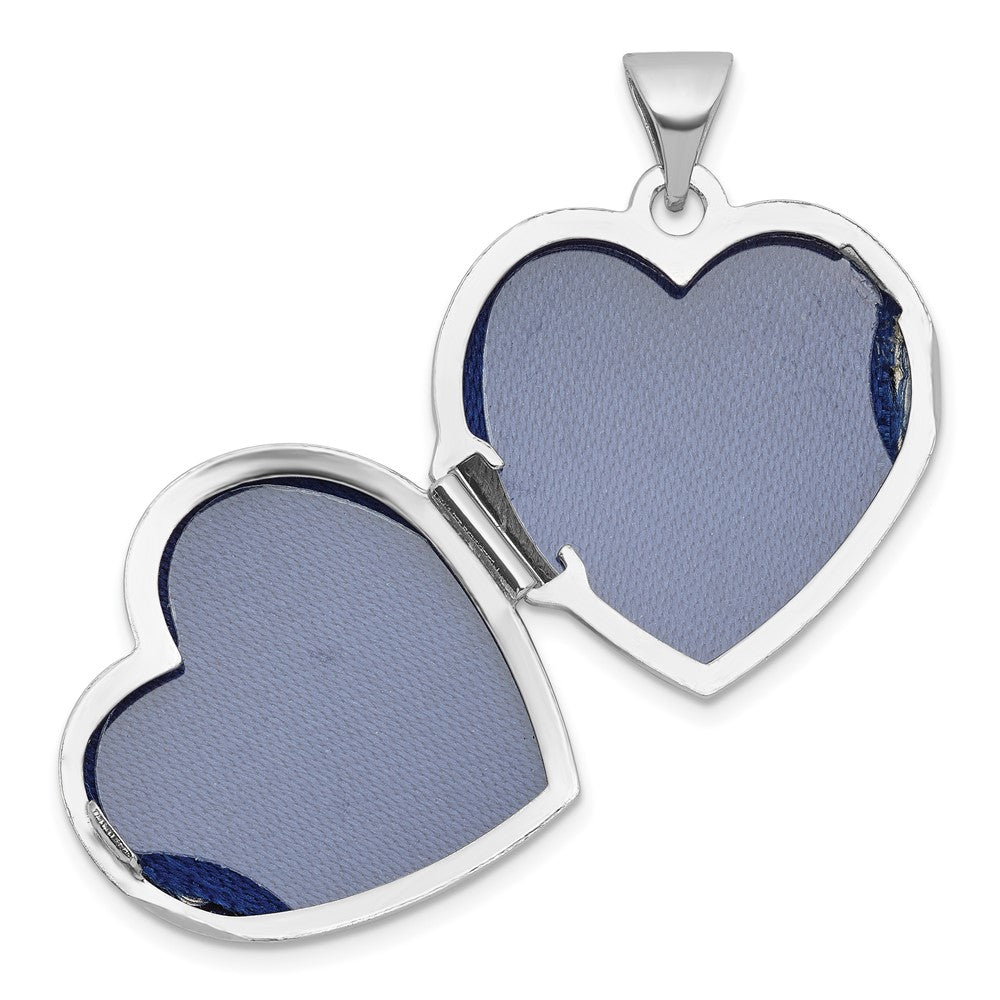 Sterling Silver Rhodium-plated Open Cross with Blue Fabric Interior 18mm Heart Locket