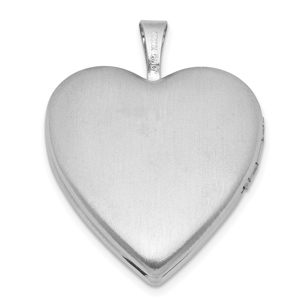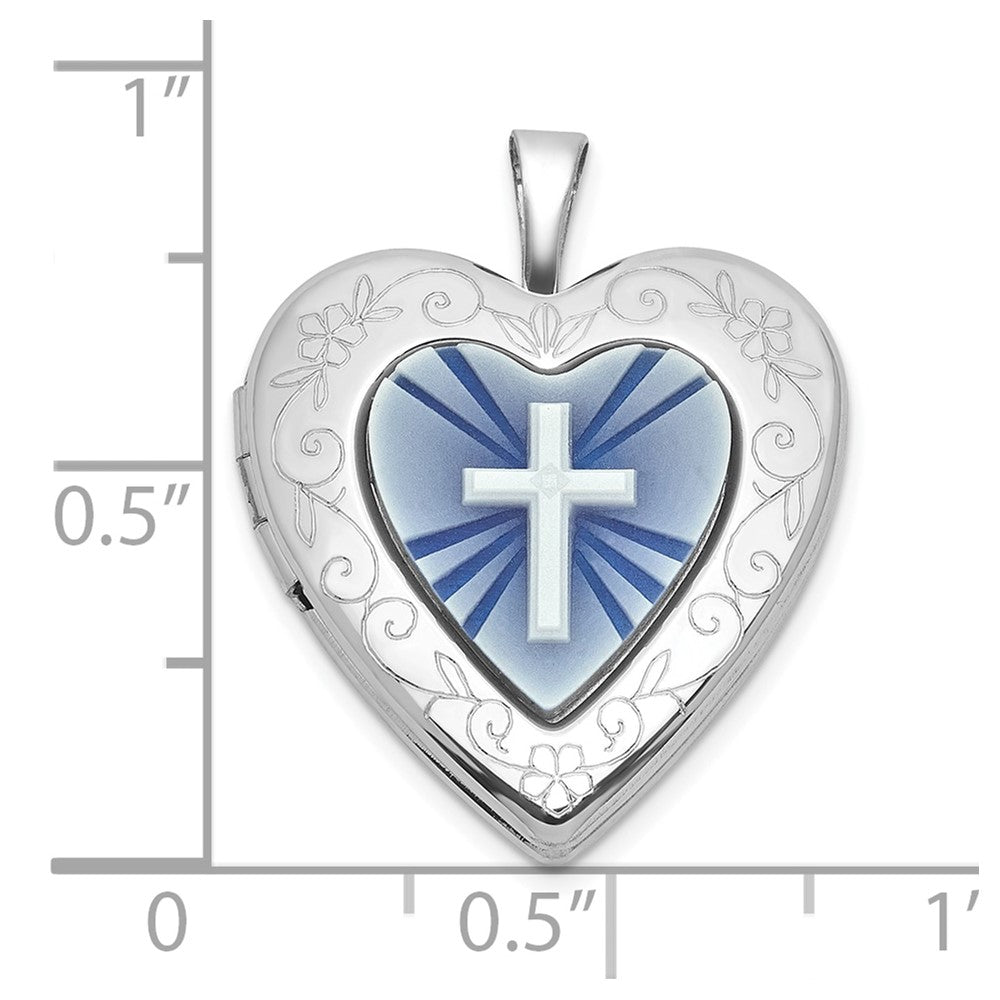 Sterling Silver Rhodium-plated Polished Front/Brushed Back Blue Cross Resin Cameo 20mm Heart Locket