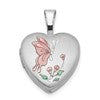 Sterling Silver Rhodium-plated Enamel Butterfly Flowers 12mm Heart Locket