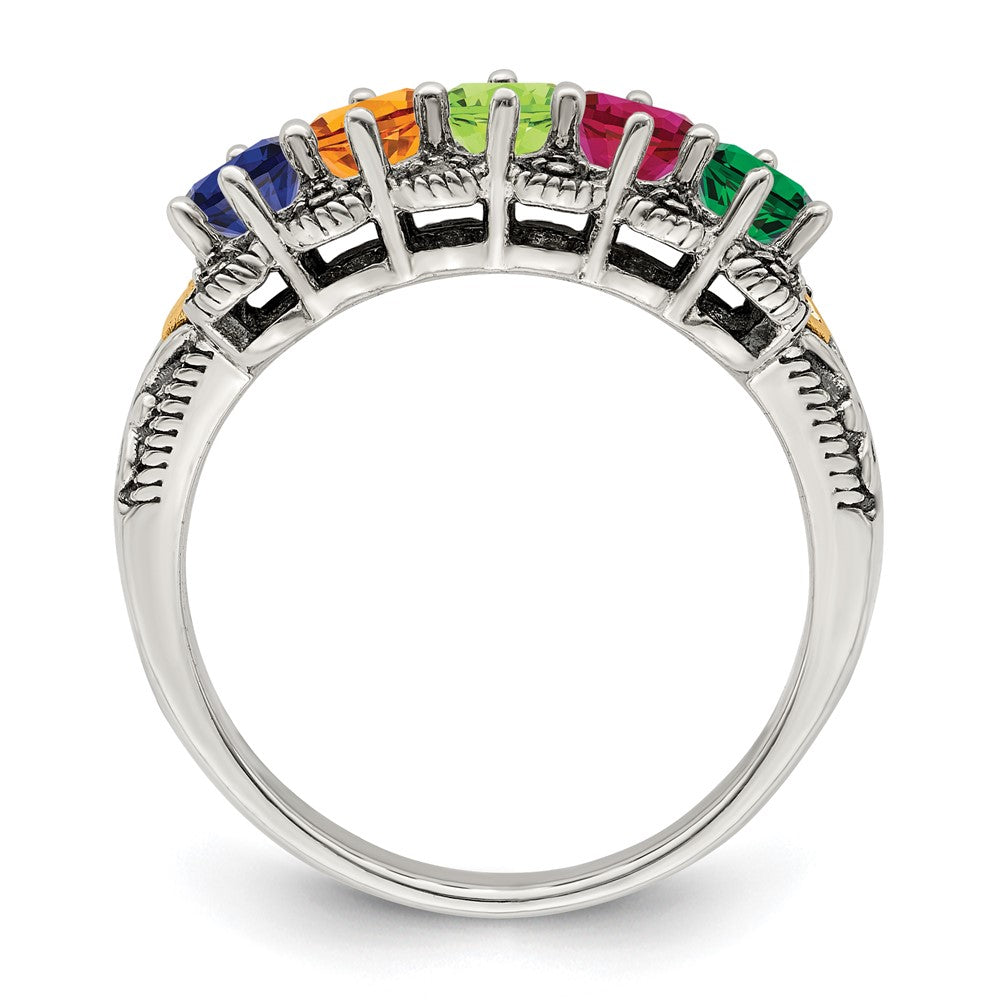 Sterling Silver Antiqued w/14k 5-stone w/Diamond Mother's Ring Semi-Mount