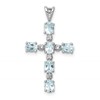 Sterling Silver Rhodium Plated Diamond & Aquamarine Cross Pendant