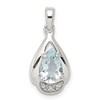 Sterling Silver Rhodium Plated Diamond and Aquamarine Pendant