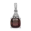 Sterling Silver Rhodium Plated Diamond Garnet Cushion Pendant