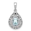 Sterling Silver Rhodium Plated Aquamarine Teardrop Pendant