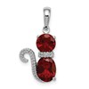Sterling Silver Rhodium-plated Garnet and Diamond Cat Pendant