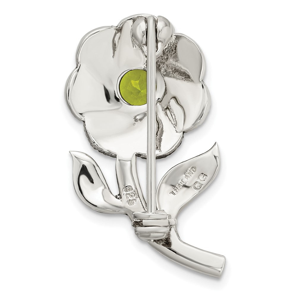 Sterling Silver Antiqued Enamel Marcasite and Green Glass Stone Flower Pin