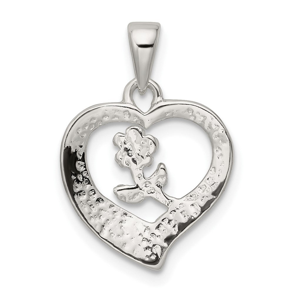 Sterling Silver Love Heart w/Flower Pendant