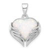 Sterling Silver Rhodium-plated White Created Opal Heart Wings Pendant
