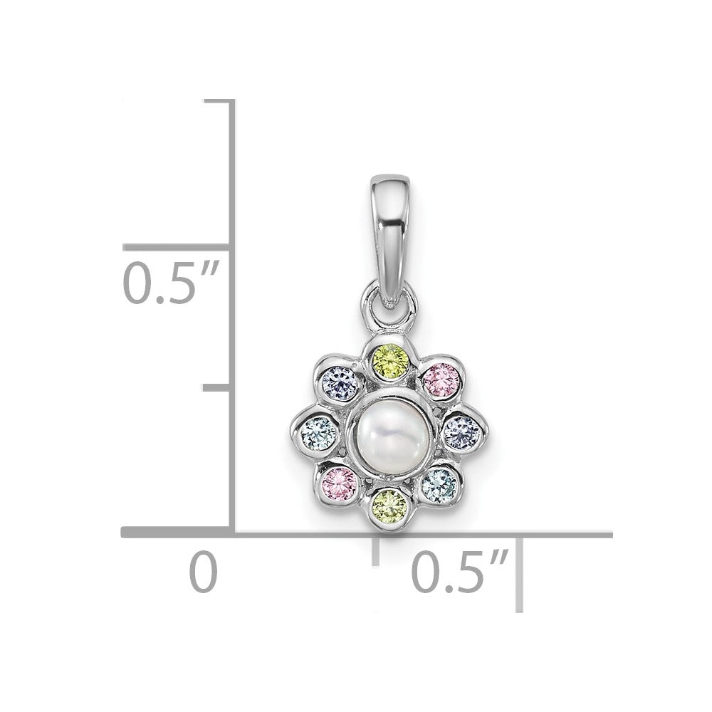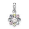 Sterling Silver Rhodium-plated Polished Green, Pink, Blue and Purple CZ and Freshwater Cultured Pearl Flower Pendant