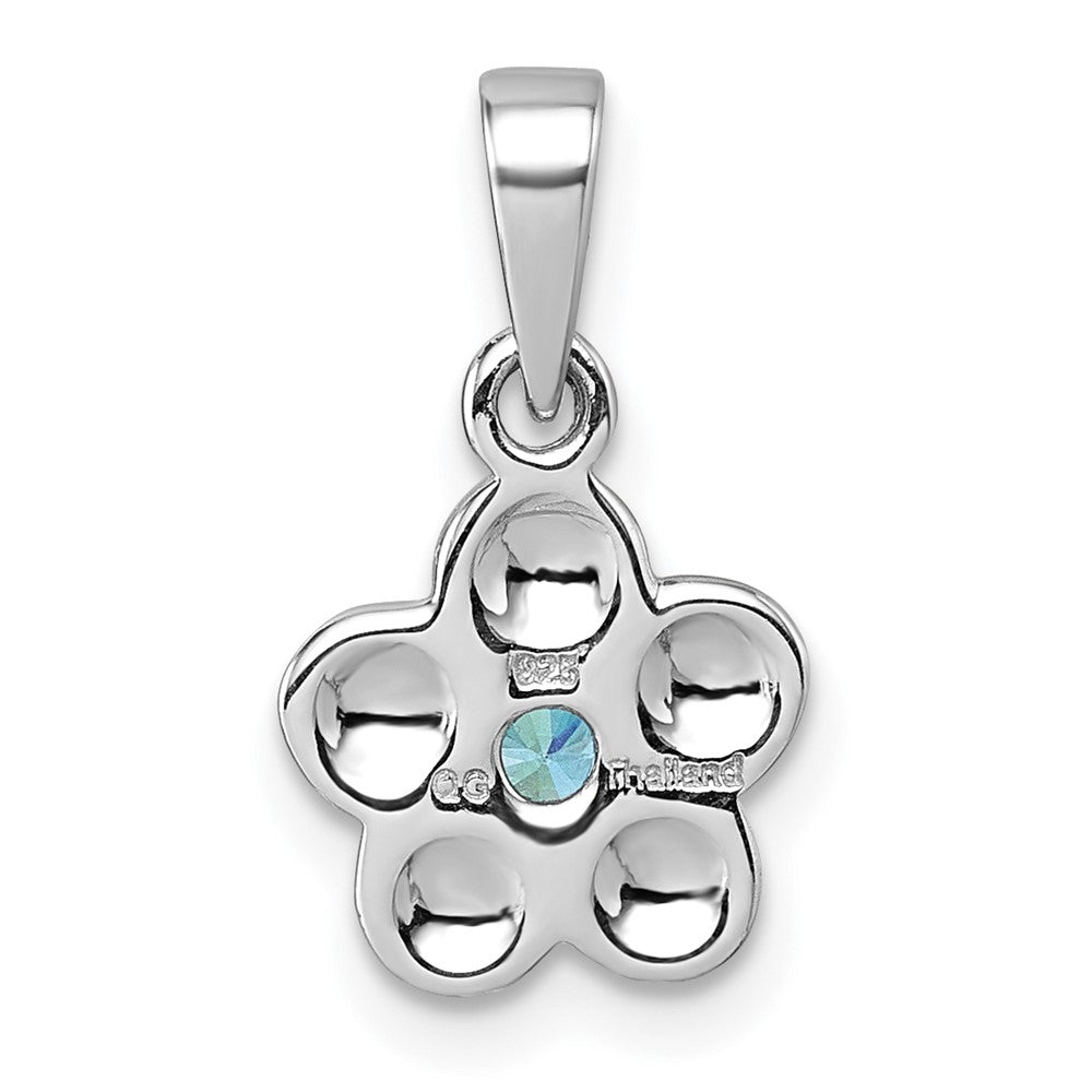 Sterling Silver Rhodium-plated Polished Blue CZ Flower Pendant