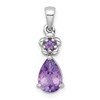 Sterling Silver Rhodium-plated Polished Amethyst Teardrop and Flower Pendant