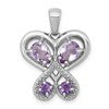 Sterling Silver Rhodium-plated Polished Amethyst and Rose de France Quartz Heart Butterfly Pendant
