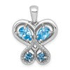 Sterling Silver Rhodium-plated Polished Light Swiss Blue Topaz and London Blue Topaz Heart Butterfly Pendant