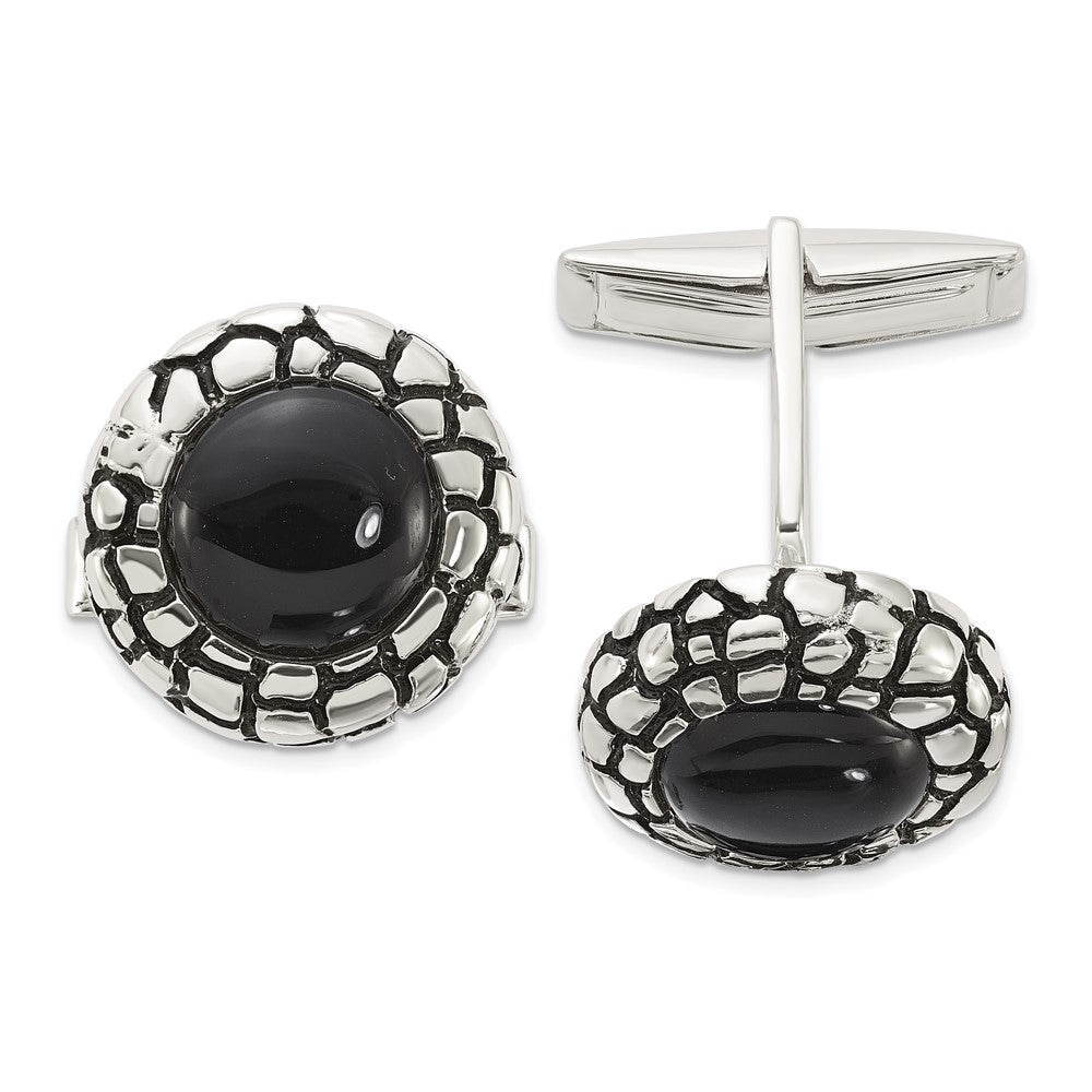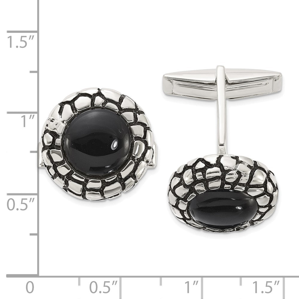 Sterling Silver Polished Round Onyx with Enamel Cuff Links