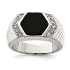 Sterling Silver Rhodium-plated Men's CZ and Onyx Ring