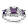 Sterling Silver Rhodium plated Purple Square CZ Ring