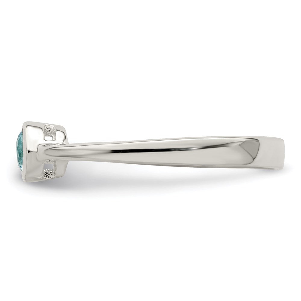 Sterling Silver Light Blue Round Bezel CZ Ring