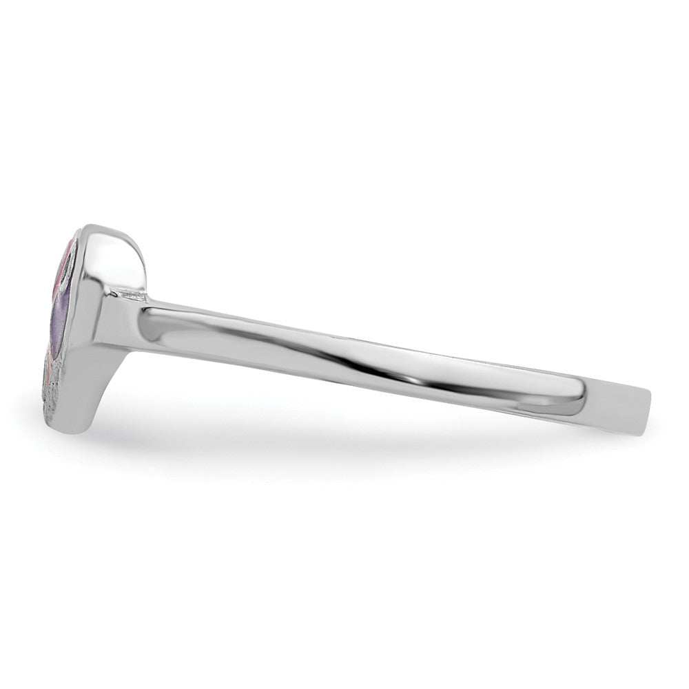 Sterling Silver RH-plated Pink & Purple Enameled Heart Children's Ring