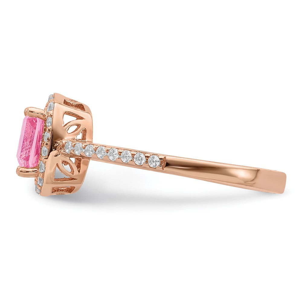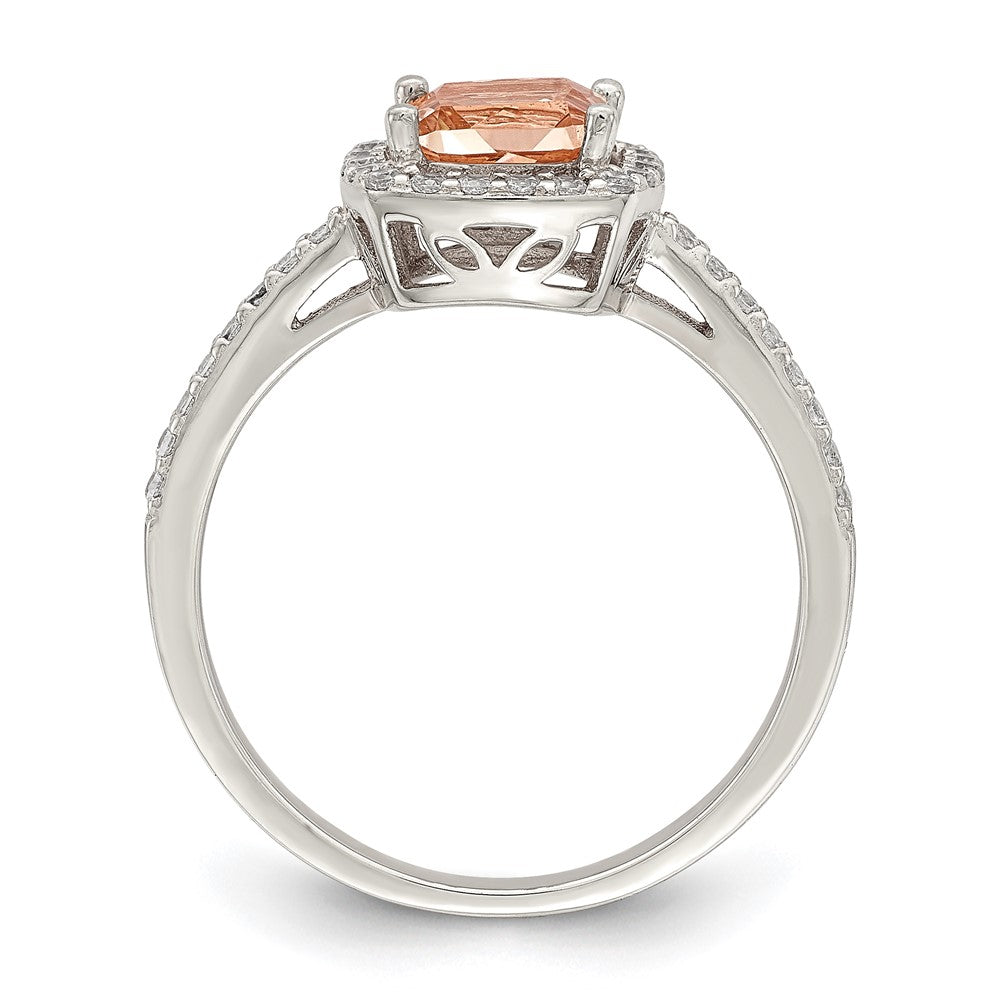 Sterling Silver Rose-tone Square Peach CZ Halo Ring