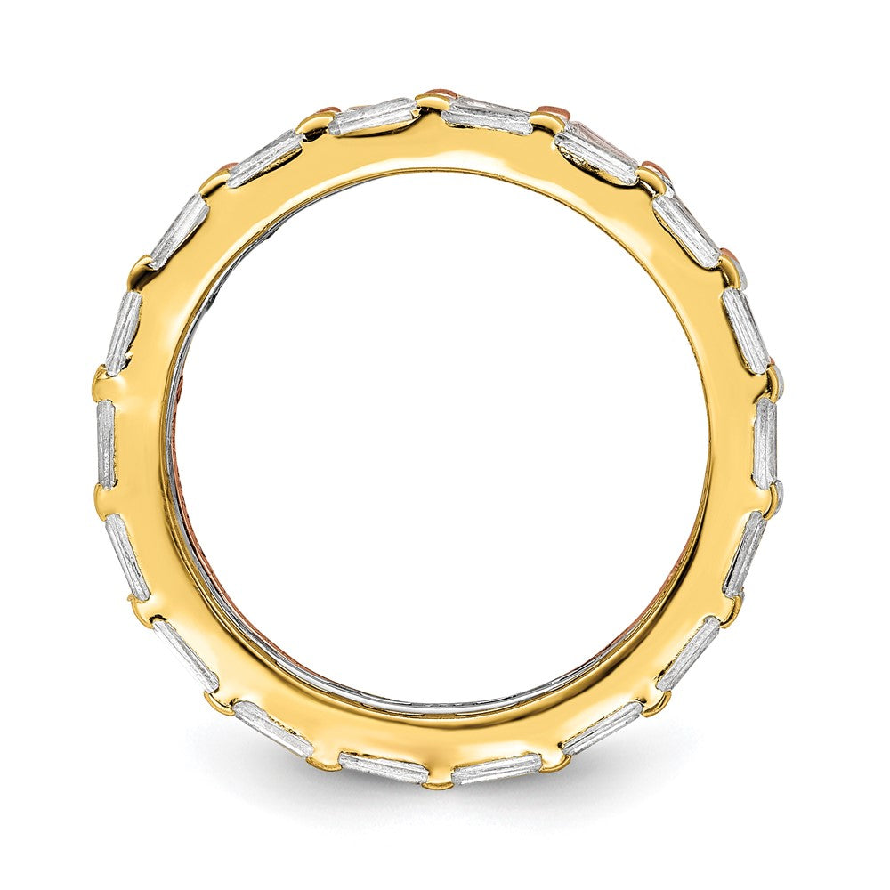 Sterling Silver Rose & Gold-tone Baguette CZ Eternity 3 Band Set