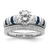 Sterling Silver Rhodium-plated Polished Blue & White CZ Engagement & Band R