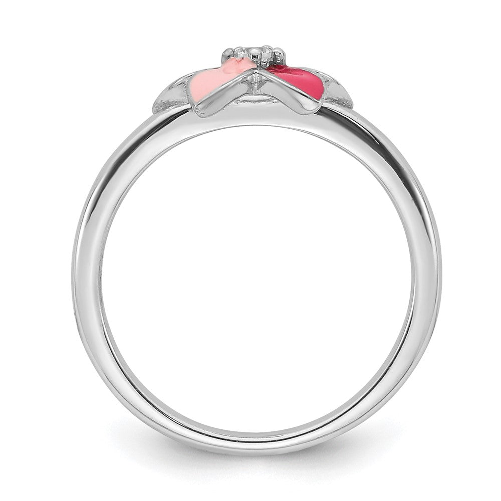 Sterling Silver RH-plated Pink Enameled & CZ Flower Children's Ring