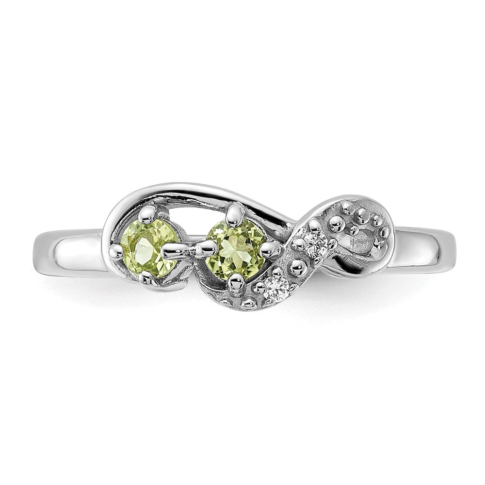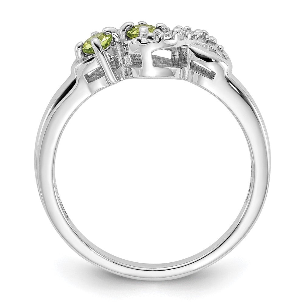 Sterling Silver Rhodium-plated Peridot and CZ Swirl Ring