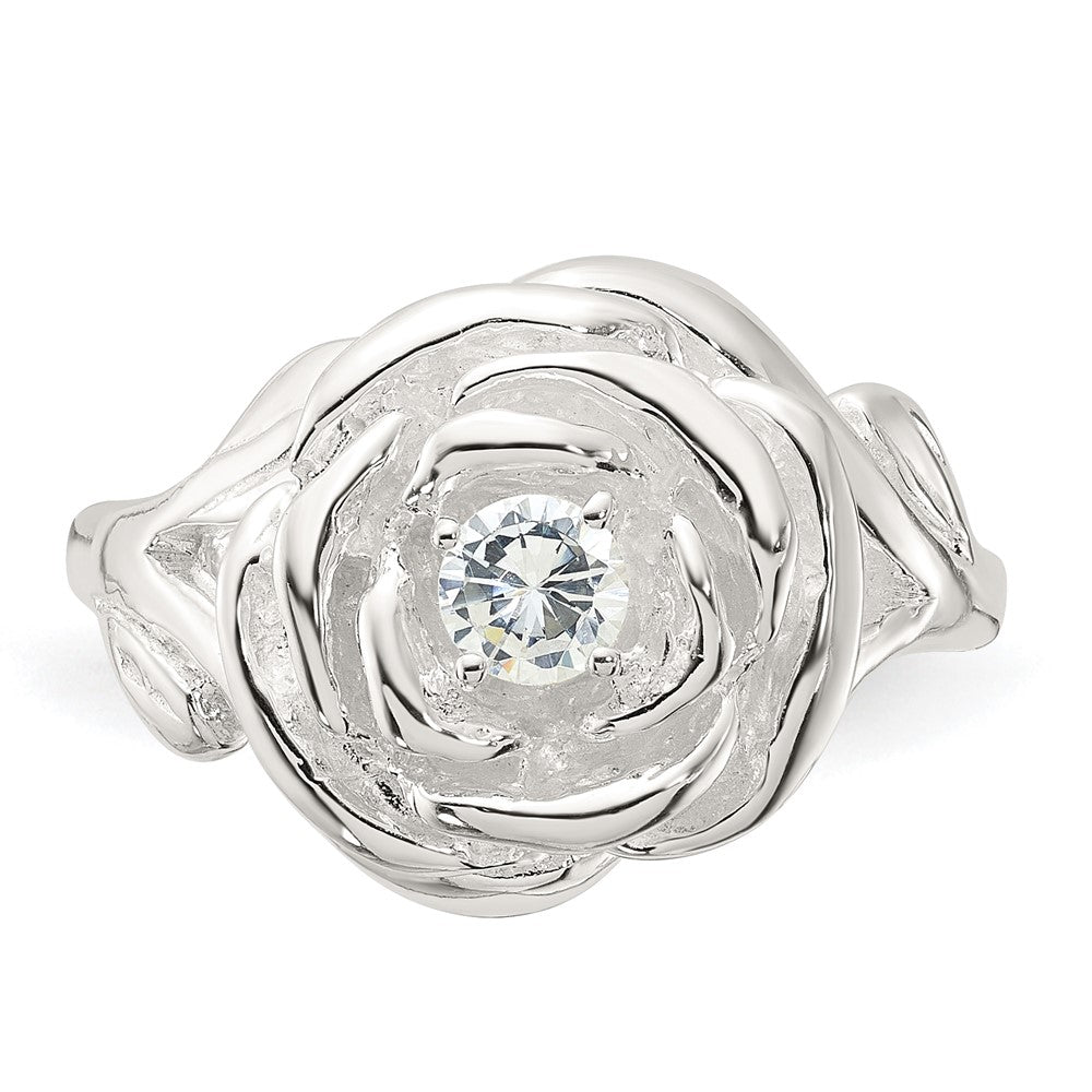 Sterling Silver Polished CZ Flower Rose Ring