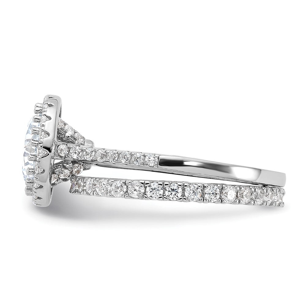 Sterling Silver RH-plated CZ Halo Engagement Ring and Eternity Band Set