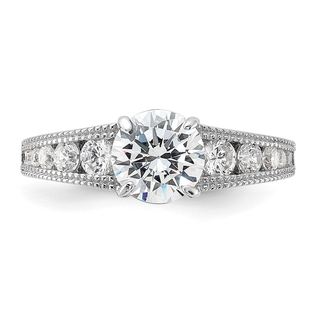 Sterling Silver Rh-plated 7mm Round Channel Set CZ Engagement Ring