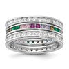 Sterling Silver Rhodium-plated Multi Color CZ 3 Band Set
