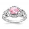 Sterling Silver Rhodium-plated Pink & White CZ Braided Ring