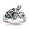 Sterling Silver Rhodium-plated Polished Abalone Sea Turtle Size 7 Ring