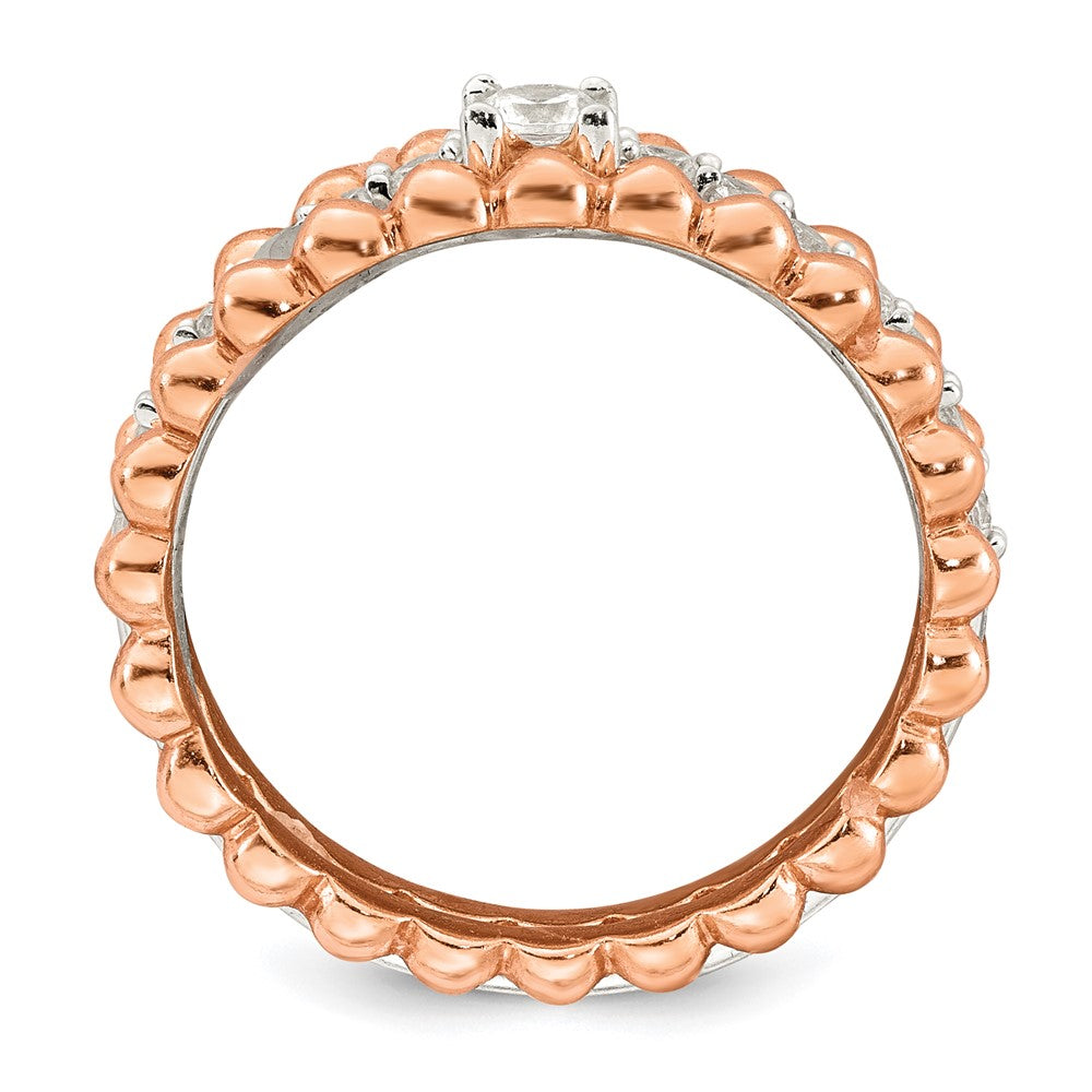 Sterling Silver and Rose-tone Polished Round White CZ Ring with 2 Beaded Bands Size 7 Three Ring Set