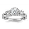 Sterling Silver Rhodium-plated Polished CZ 3-Stone Halo Size 7 Engagement Ring and Wedding Band Set
