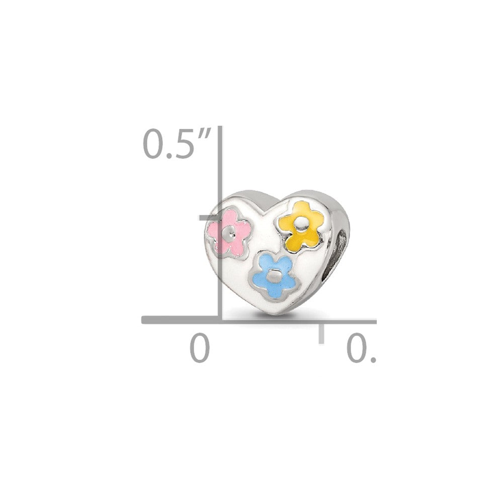 Sterling Silver Reflections Kids Enameled Heart w/Flowers Bead