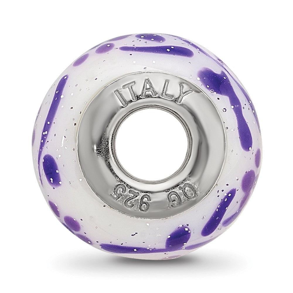 Sterling Silver Reflections Purple Glitter Flower Italian Glass Bead