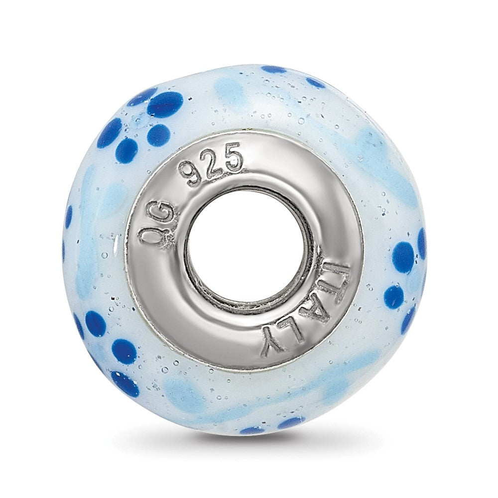 Sterling Silver Reflections Blue Glitter Flower Italian Glass Bead