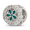 Sterling Silver Reflections Polished CZ and Teal Enamel Flower Circle Bead