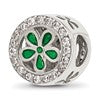 Sterling Silver Reflections Polish CZ and Green Enamel Flower Circle Bead