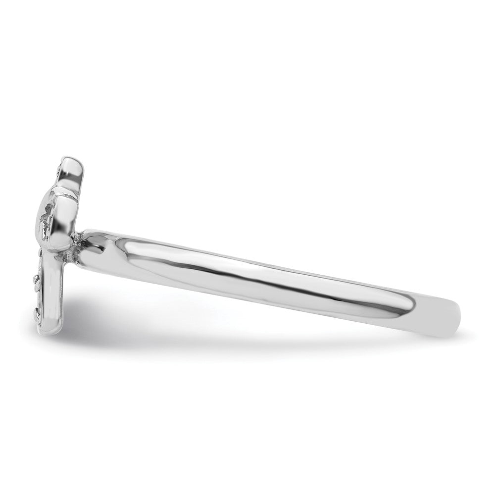 Sterling Silver Stackable Expressions Rhodium Aquamarine Cross Ring