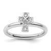 Sterling Silver Stackable Expressions Rhodium White Topaz Cross Ring